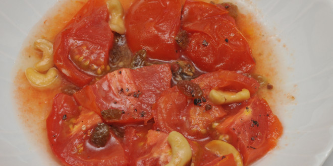 This sweet tomato chutney is unique to Pondicherry and Karaikal and is best had with lamb or chicken biryani. This chutney keeps well for a few days.